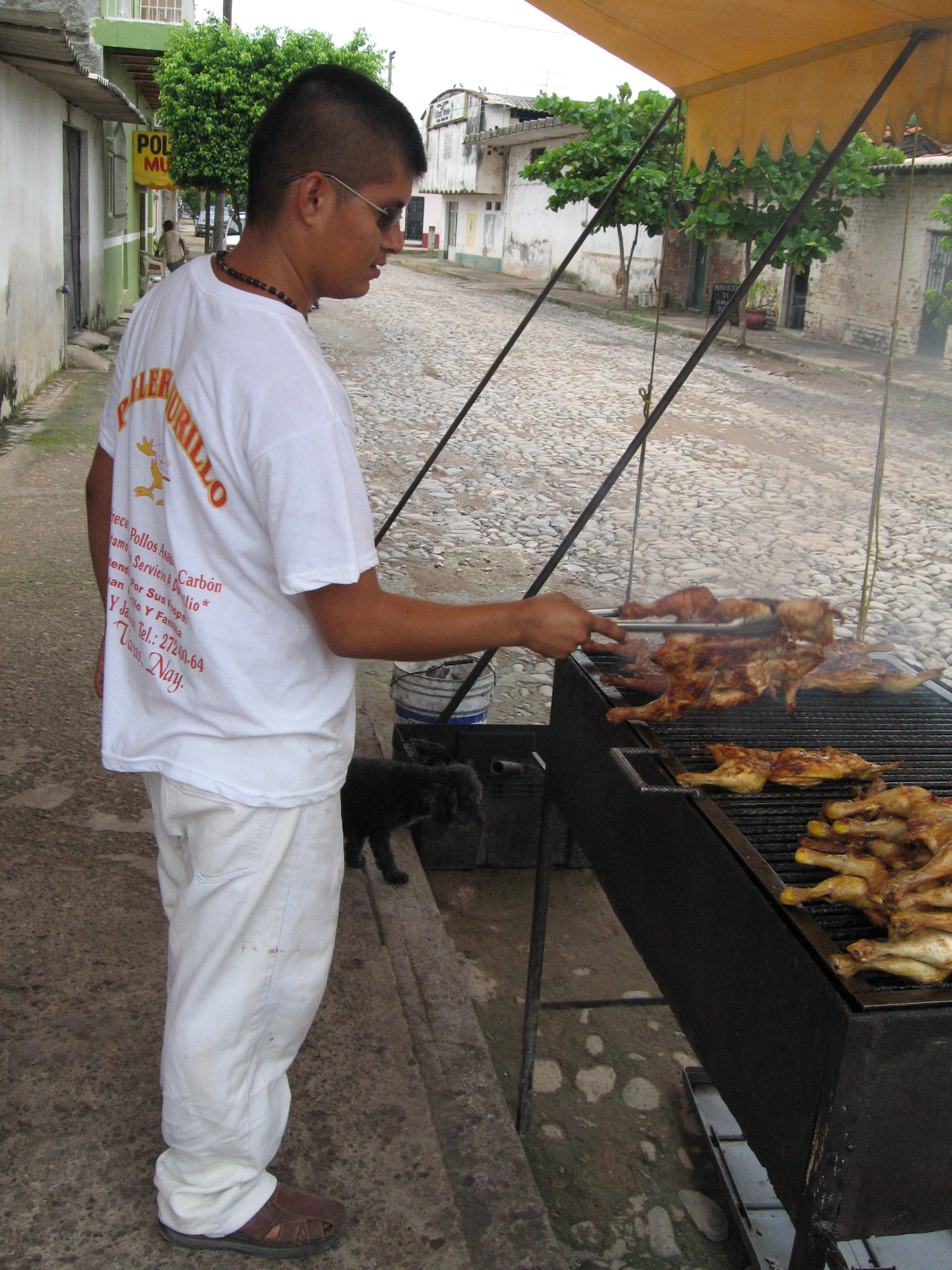 If you're not fond of pork cracklings, you can always find a kid grilling chicken for immediate consumption.